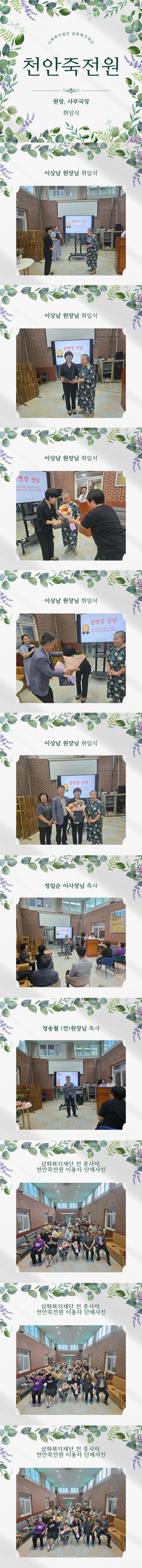 [7월] 이상남 원장님 취임식 페이지 정보 작성자 운영자 작성일25-07-02 16:55 조회847회 댓글0건 관련링크 목록 본문 [7월] 07월 01일(화) 이상남 원장님 취임식 진행하였습니다.삼화복지재단 종사자분들과 천안죽전원 이용자분들께서 힘찬 응원과 박수로 삼화복지재단 천안죽전원의 관리자분들을 축하해주셨습니다.이상남 원장님의 취임을 진심으로 축하드립니다. 댓글목록 등록된 댓글이 없습니다. 목록