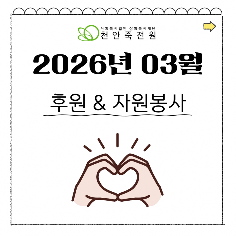 [2월]후원&자원봉사 페이지 정보 작성자 운영자 작성일26-03-13 11:13 조회12회 댓글0건 관련링크 목록 본문 2026년 2월 후원 및 자원봉사입니다.감사합니다 댓글목록 등록된 댓글이 없습니다. 목록